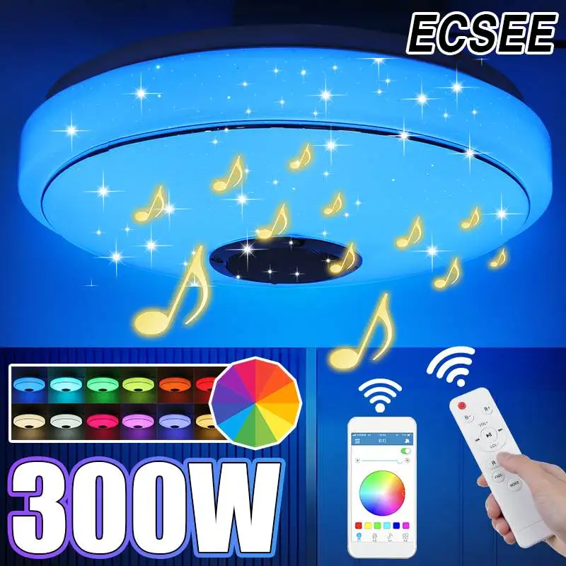 Светодиодный музыкальный потолочный светильник с регулируемой яркостью, 300 Вт