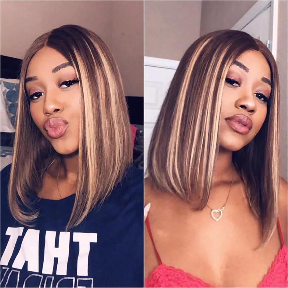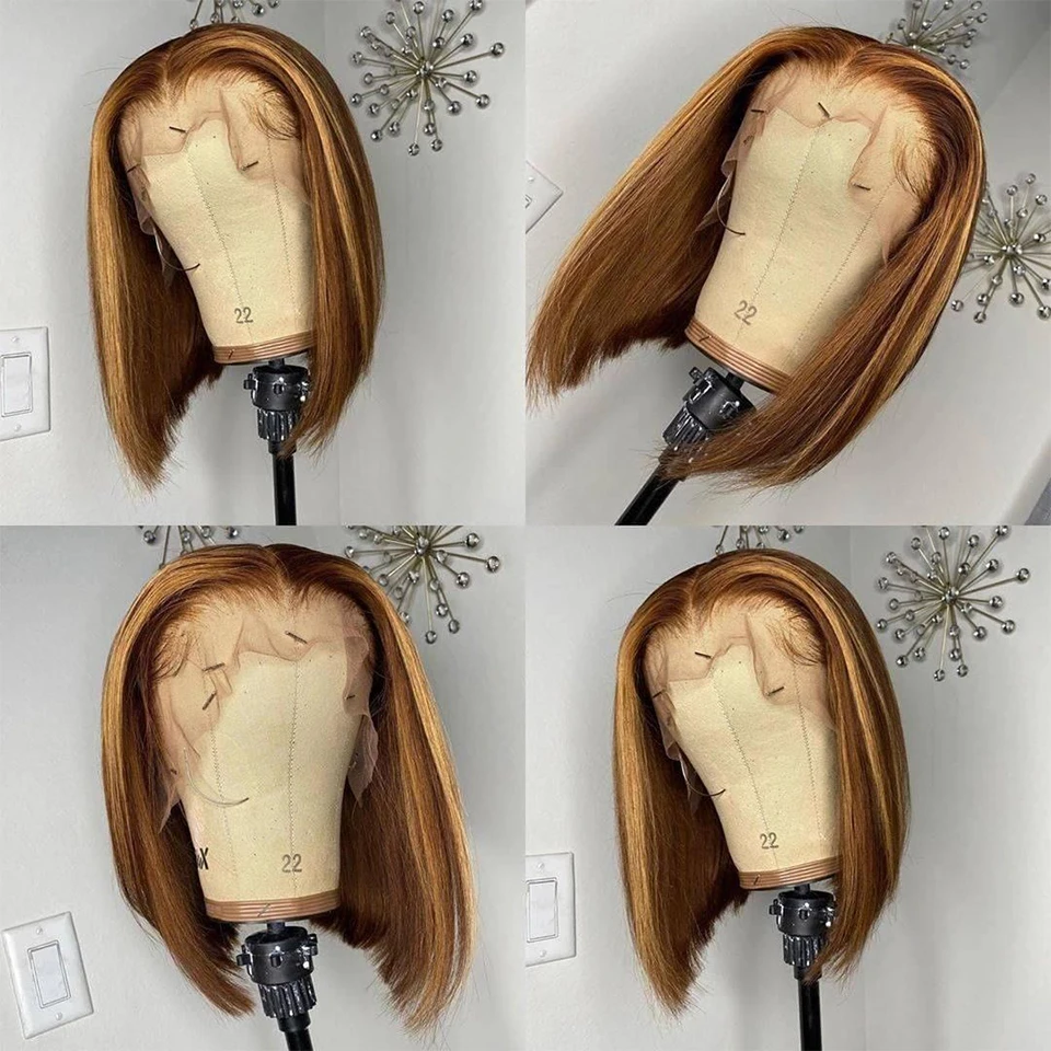 Парик хайлайтер, прямые волосы, парики боб, 13x 4, парики из человеческих волос на сетке спереди, бразильские волосы Реми, цветные короткие волосы боб Омбре, цветные парики