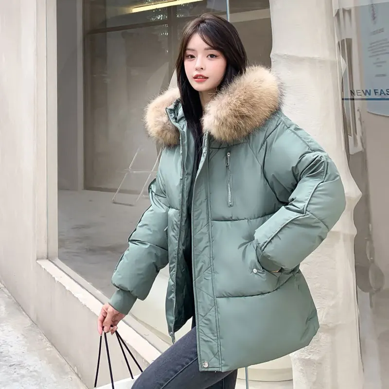 Парка женская зимняя с капюшоном, корейский стиль, Осень-зима, хлопковая куртка, женская одежда, пальто с воротником из искусственного меха
