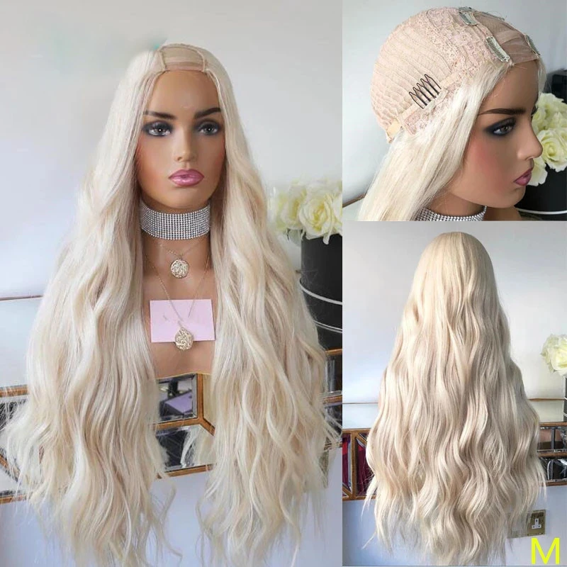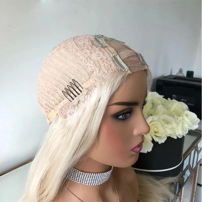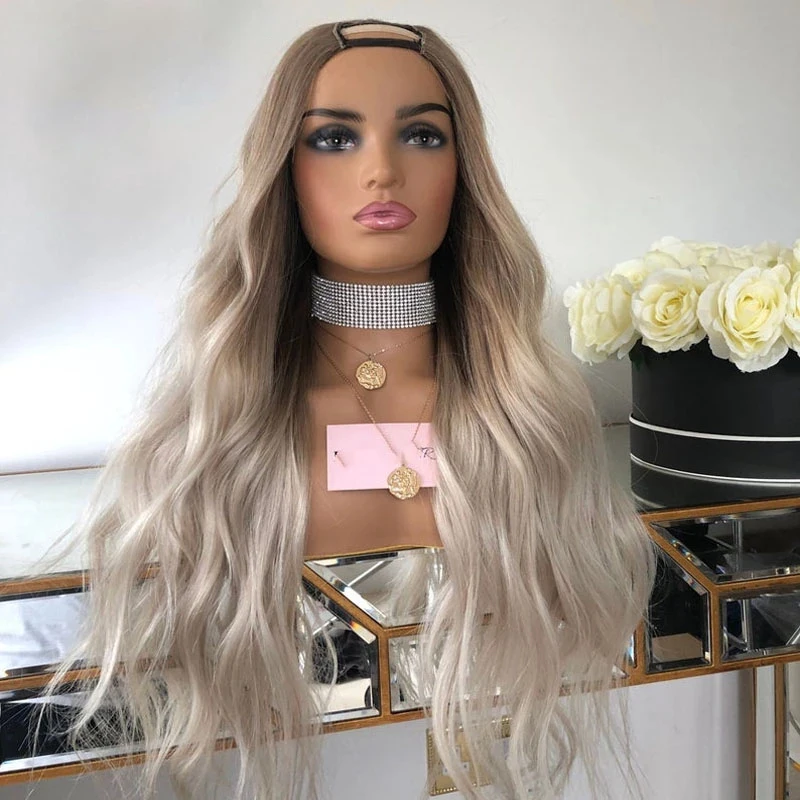 Парик Платиновый светлый волнистый с эффектом омбре, парик с U-образной частью, прямые парики из 100% человеческих волос среднего размера, перуанские волосы без повреждений, полностью машинное изготовление