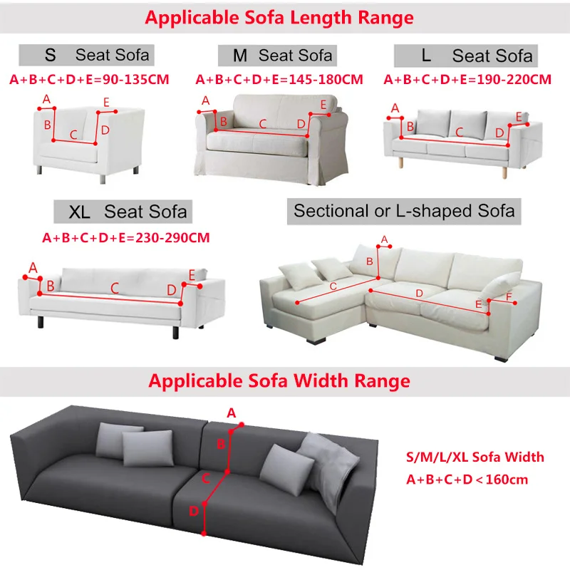 3. Размер крышки дивана (прибл.): S Seat (90-135 см); M Seat (145-180 см); L Seat (190-220 см); Сиденье XL (230-290 см)