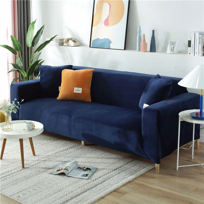 Однотонный плотный бархатный чехол для дивана в гостиную, полностью закрывающий нескользящий чехол для дивана, плюшевый чехол для дивана