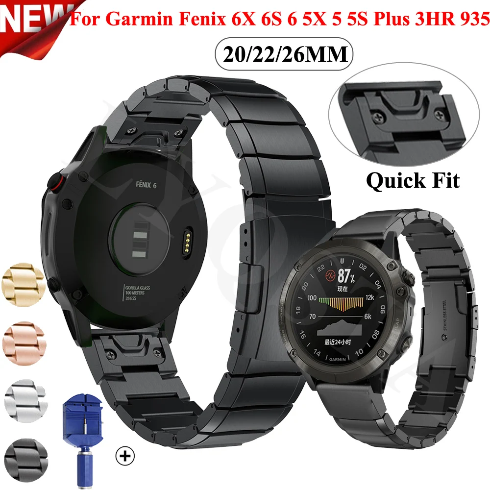 Ремешок металлический спортивный для смарт-часов Garmin Fenix7 7S 7X 6X 6 6S Pro 5X 5 3HR, браслет из нержавеющей стали для QuickFit, 26 20 22 мм