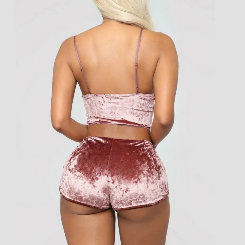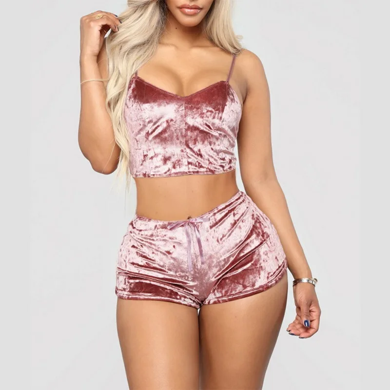 Женский комплект из 2 предметов, бархатная Пижама, пикантные шорты на бретелях-спагетти, Пижамный костюм, женская повседневная одежда для сна, Женский пижамный комплект для вечеринки