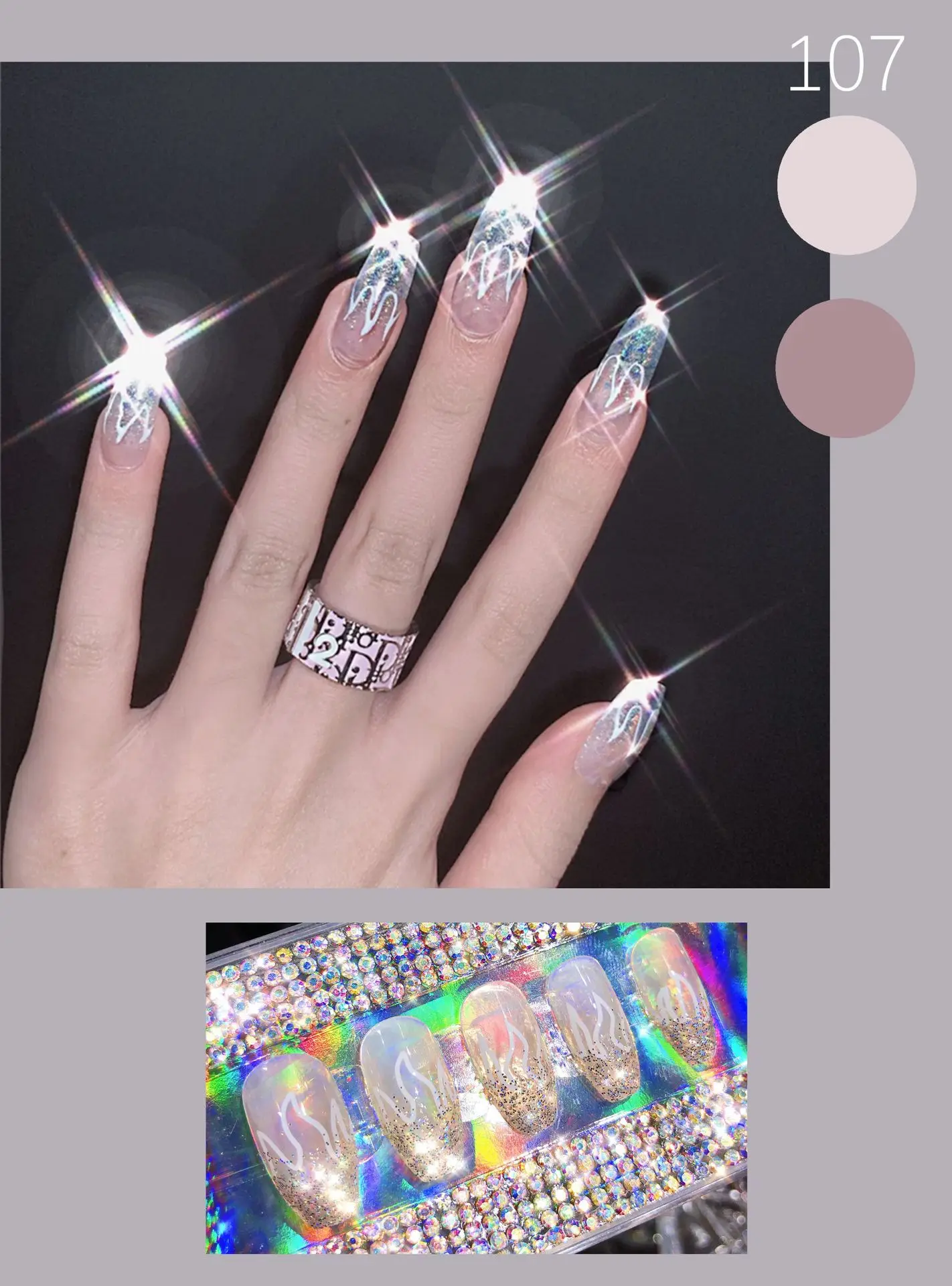 Накладные ногти с блестящим пламенем, 24 шт., накладные ногти, накл...