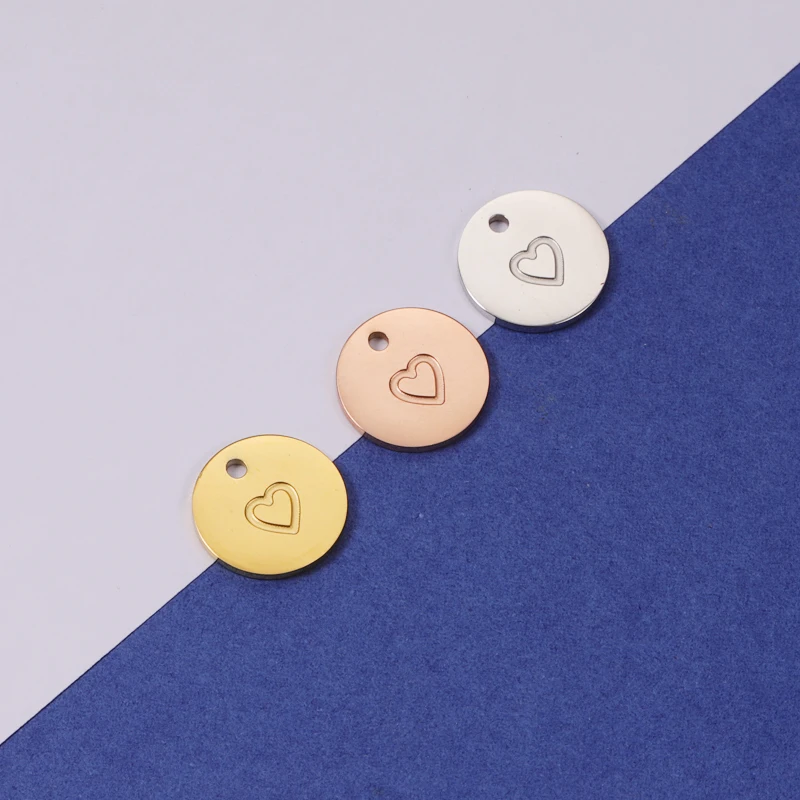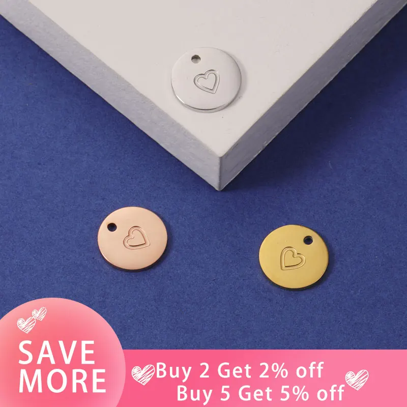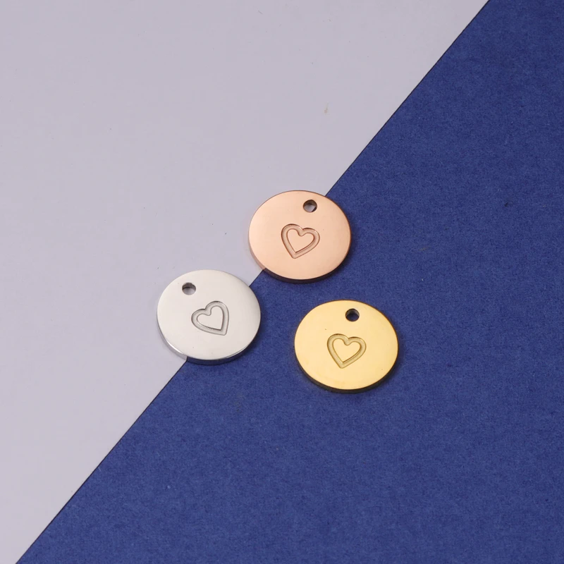 Fnixtar, 20 шт., гравировка круглых углов, сердце, искусственная полированная Подвеска из нержавеющей стали, подвески для самостоятельного изготовления ожерелий, браслетов