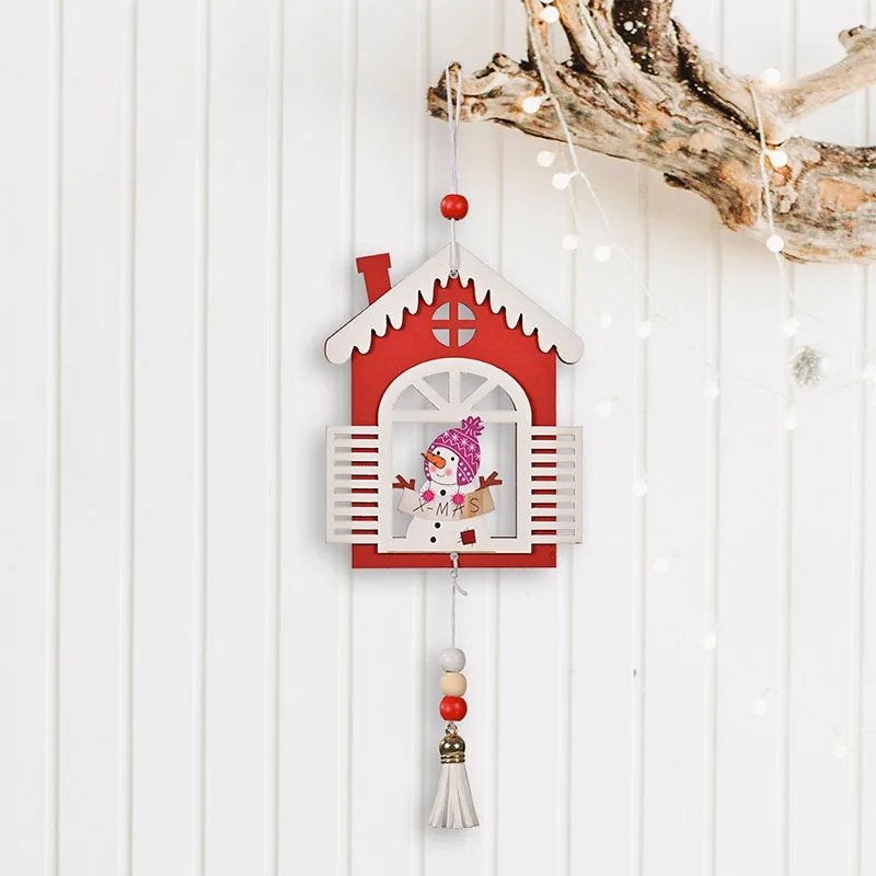 1 шт. деревянный Рождественский подвесной дом, рождественская елка,...