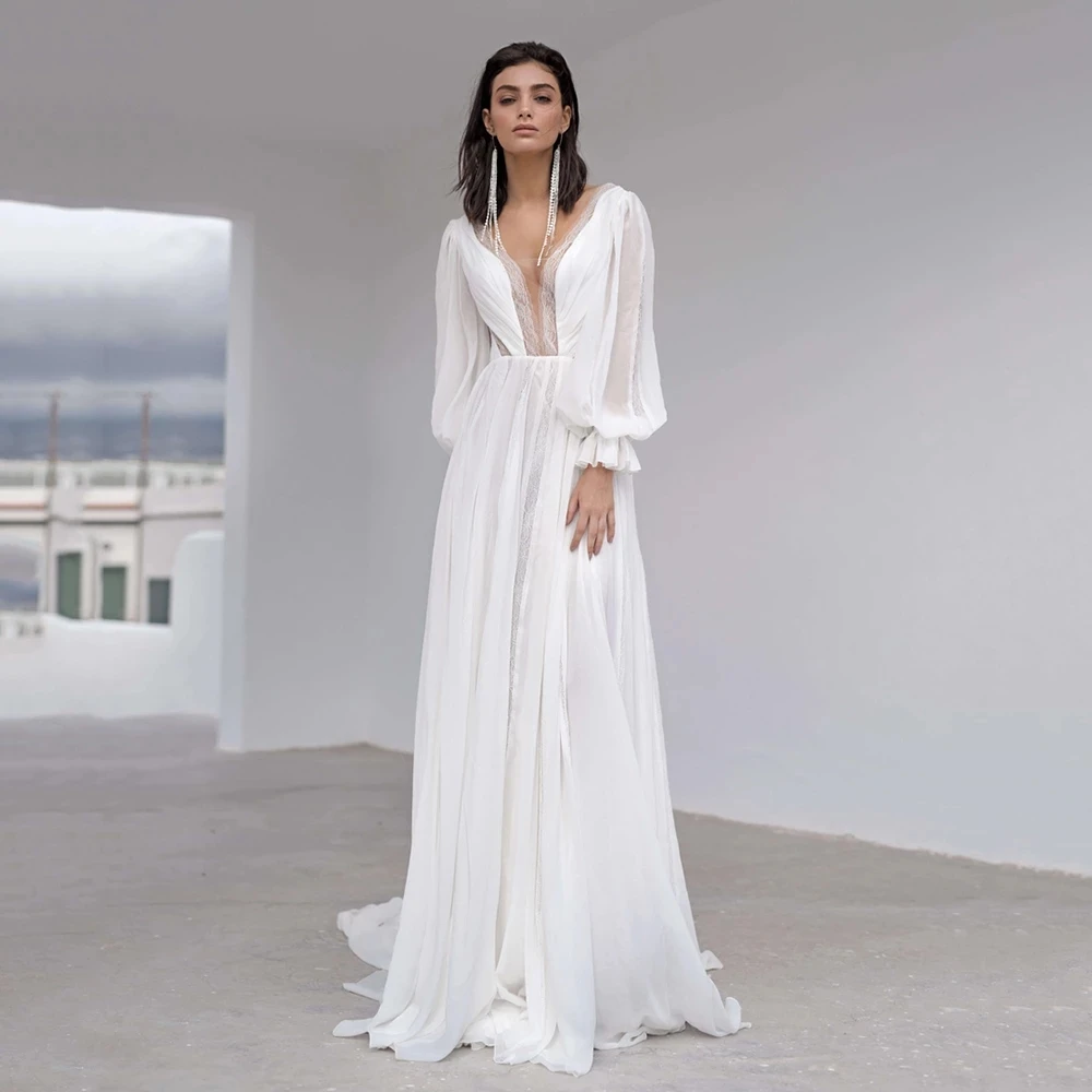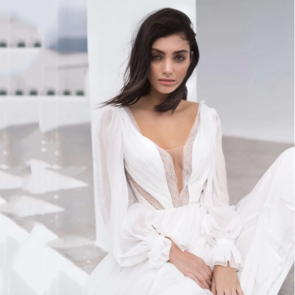 HERBURNL, лидер продаж 2022 года, трапециевидные шифоновые кружевные пляжные Сексуальные Платья с глубоким V-образным вырезом и открытой спиной, Пышные свадебные платья, модные платья для женщин