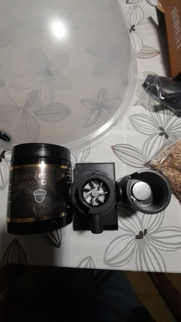 Я получил машину дыма. По договоренности с чашками и большим отверстием для улучшения пищи. Серьезный и Быстрый продавец; Хорошая покупка.