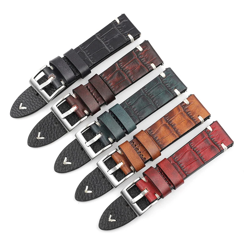 Ремешок из натуральной кожи с крокодиловой текстурой для мужских и женских часов