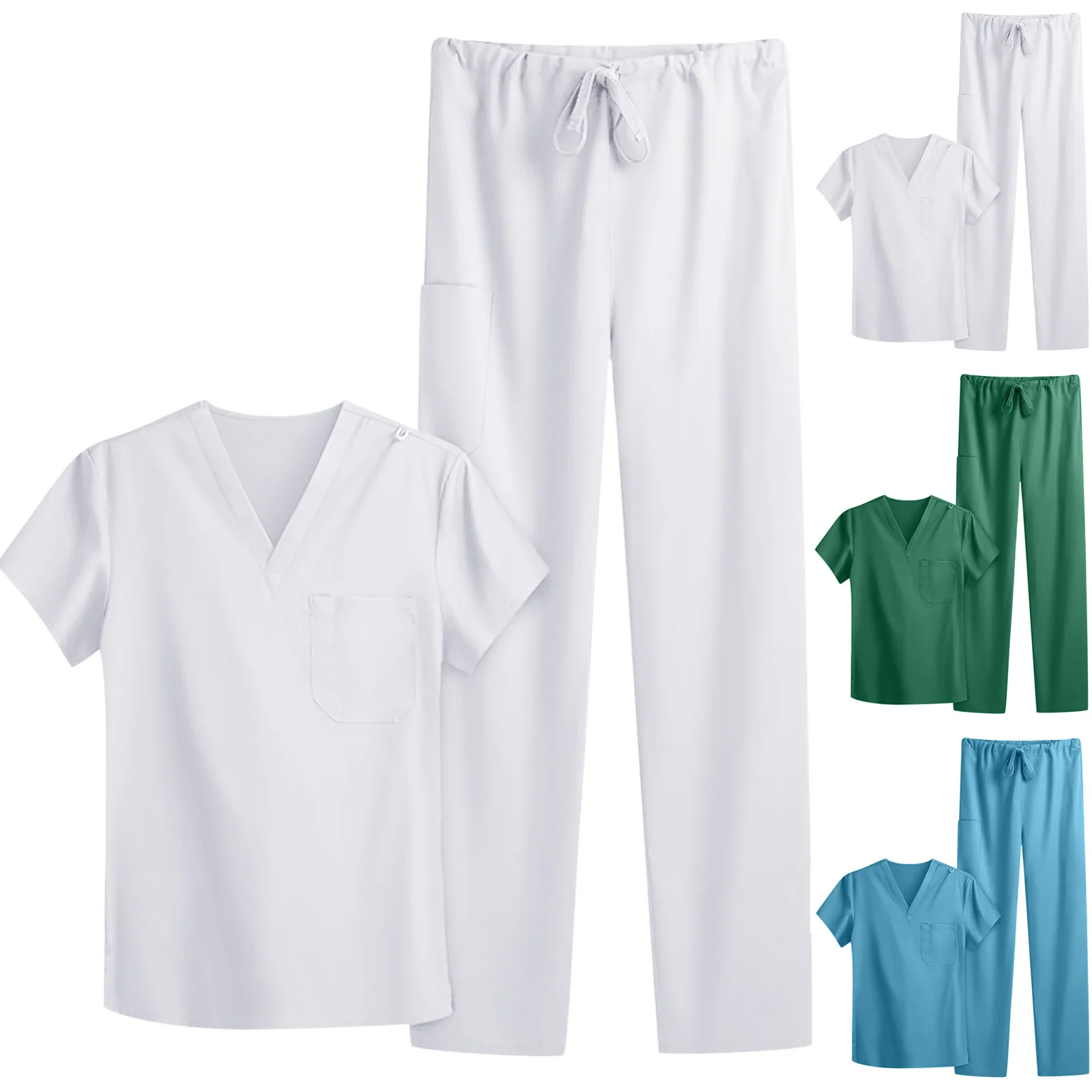 Костюм унисекс рабочий с коротким рукавом, V-образным вырезом и штанами с карманами