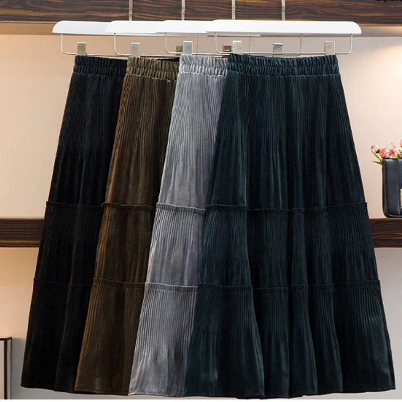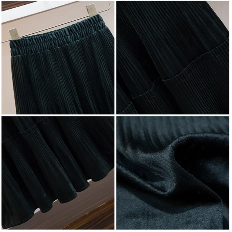 Женские юбки, модная женская юбка миди, плиссированная бархатная юб...