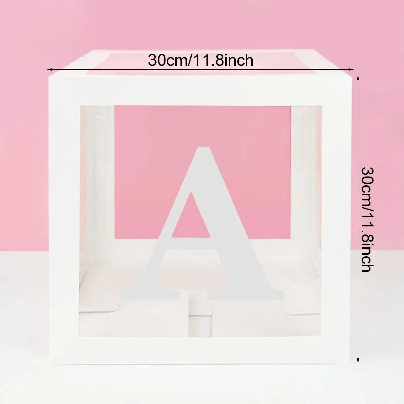Примечание: буквы/цифры самоклеющиеся, Снимите пленку с задней стороны и наклейте ее на одну сторону коробки, а затем Соберите коробку. Сделано в прозрачной подарочной коробке! Размер коробки 30*30*30 см, который может держать воздушные шары, цветы, плюшевые игрушки, подарки и т. Д.