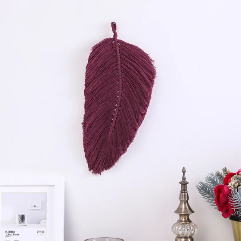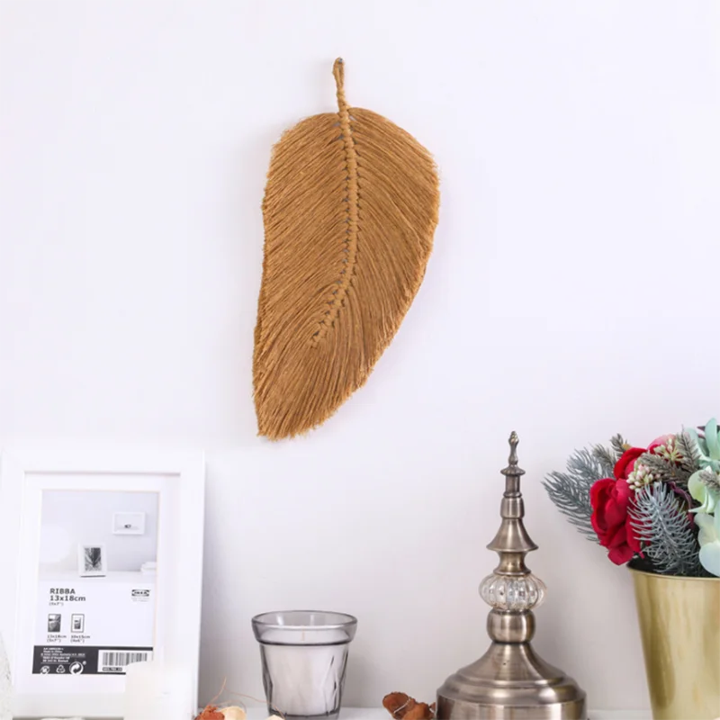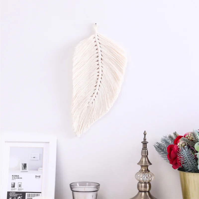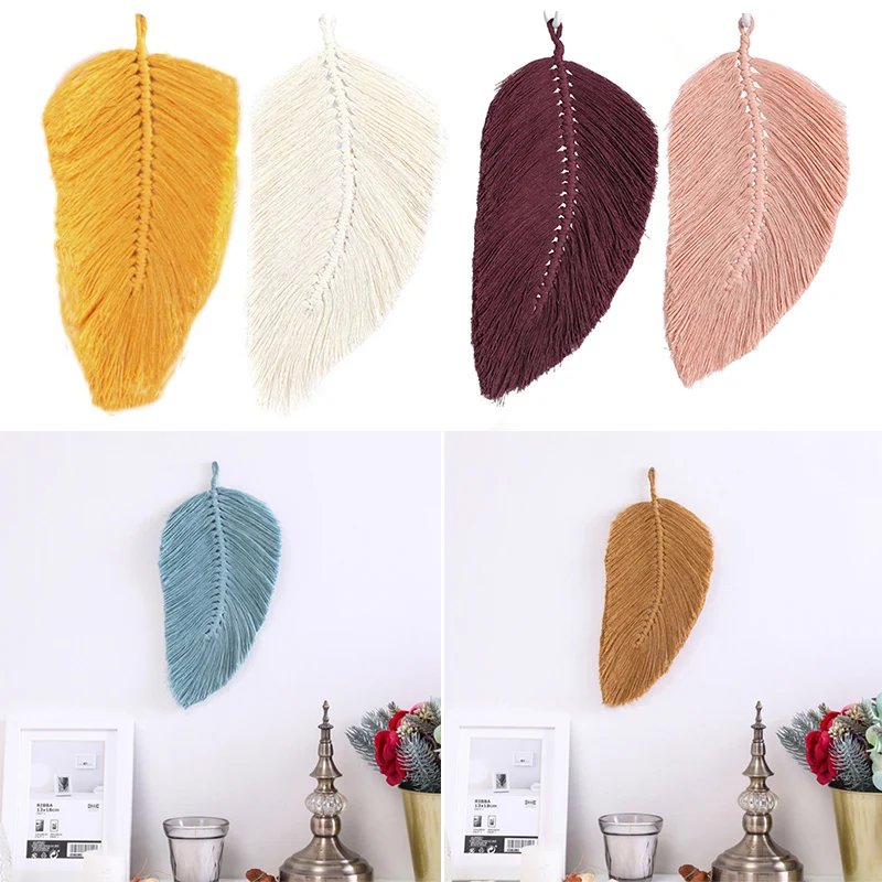 Гобелен ручной работы с листьями и перьями, хлопковый шнур, украшен...