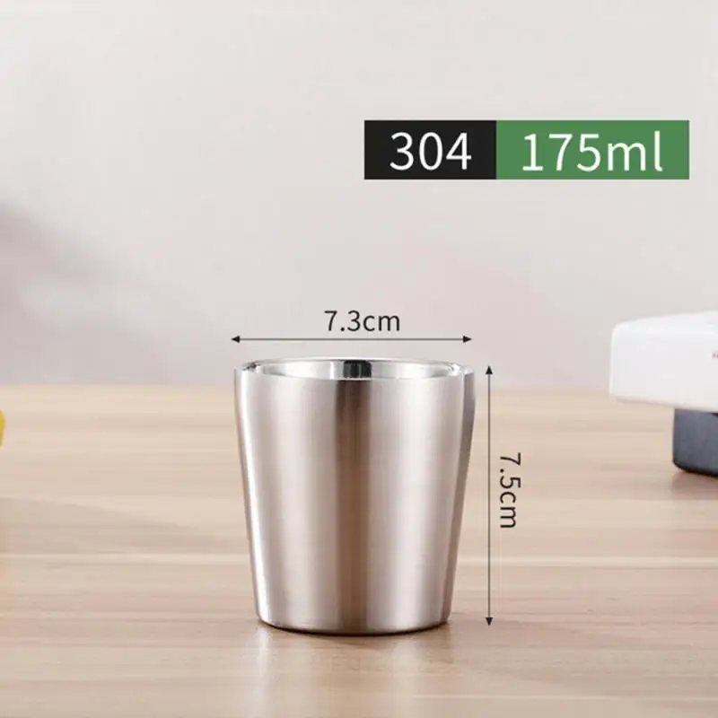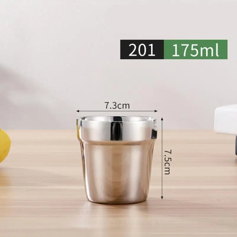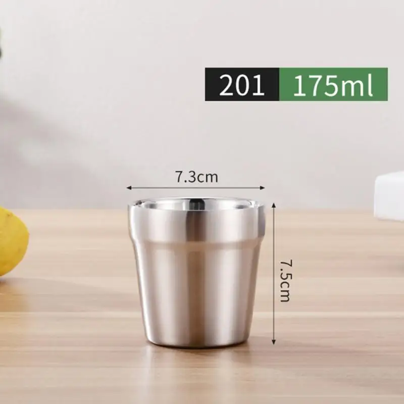 Стаканы и кружки из нержавеющей стали с двойными стенками, металлическая стандартная кофейная чашка 175260 мл для кухни, бара, посуда для напитков, инструменты