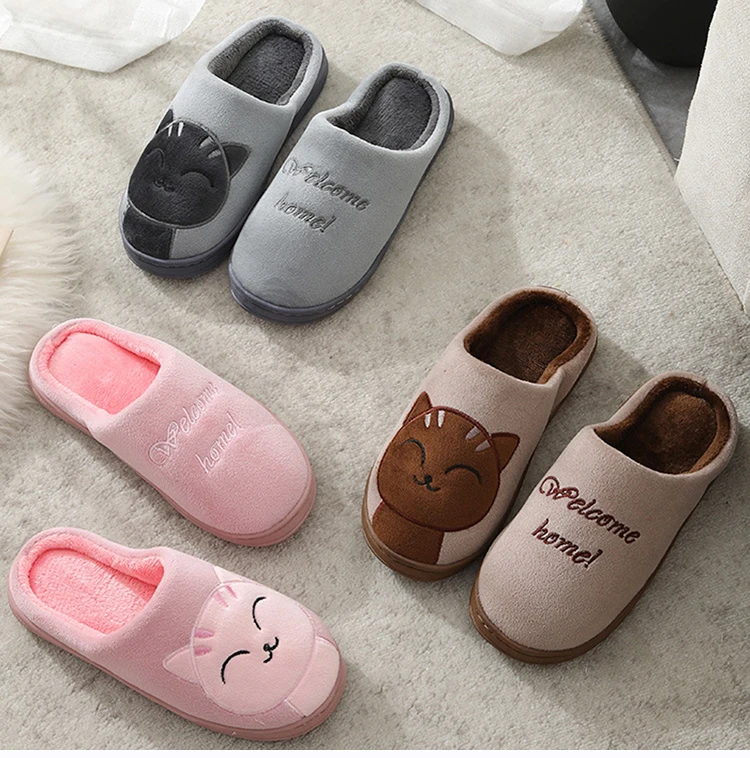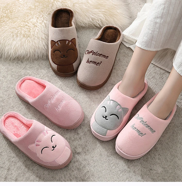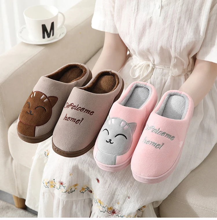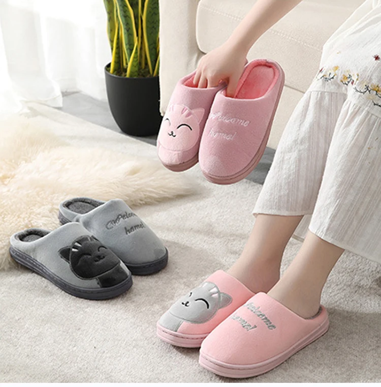 Меховые шлепанцы, женские хлопковые шлепанцы с кошачьими лапками, ж...