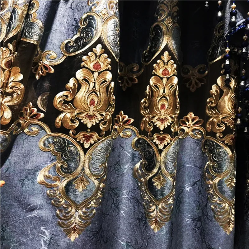 Занавески вельветовые с вышивкой, в европейском стиле, на заказ, для гостиной, столовой, спальни