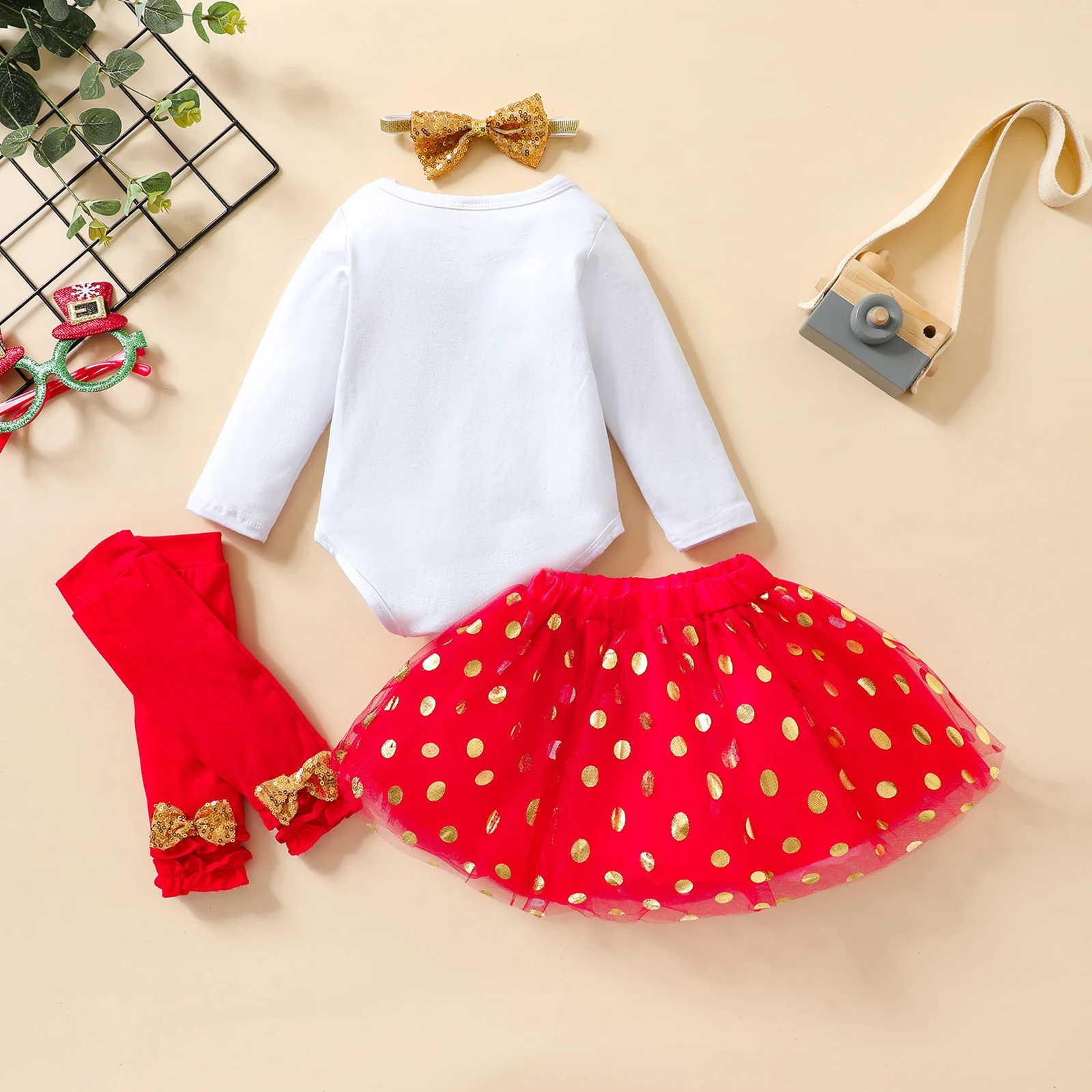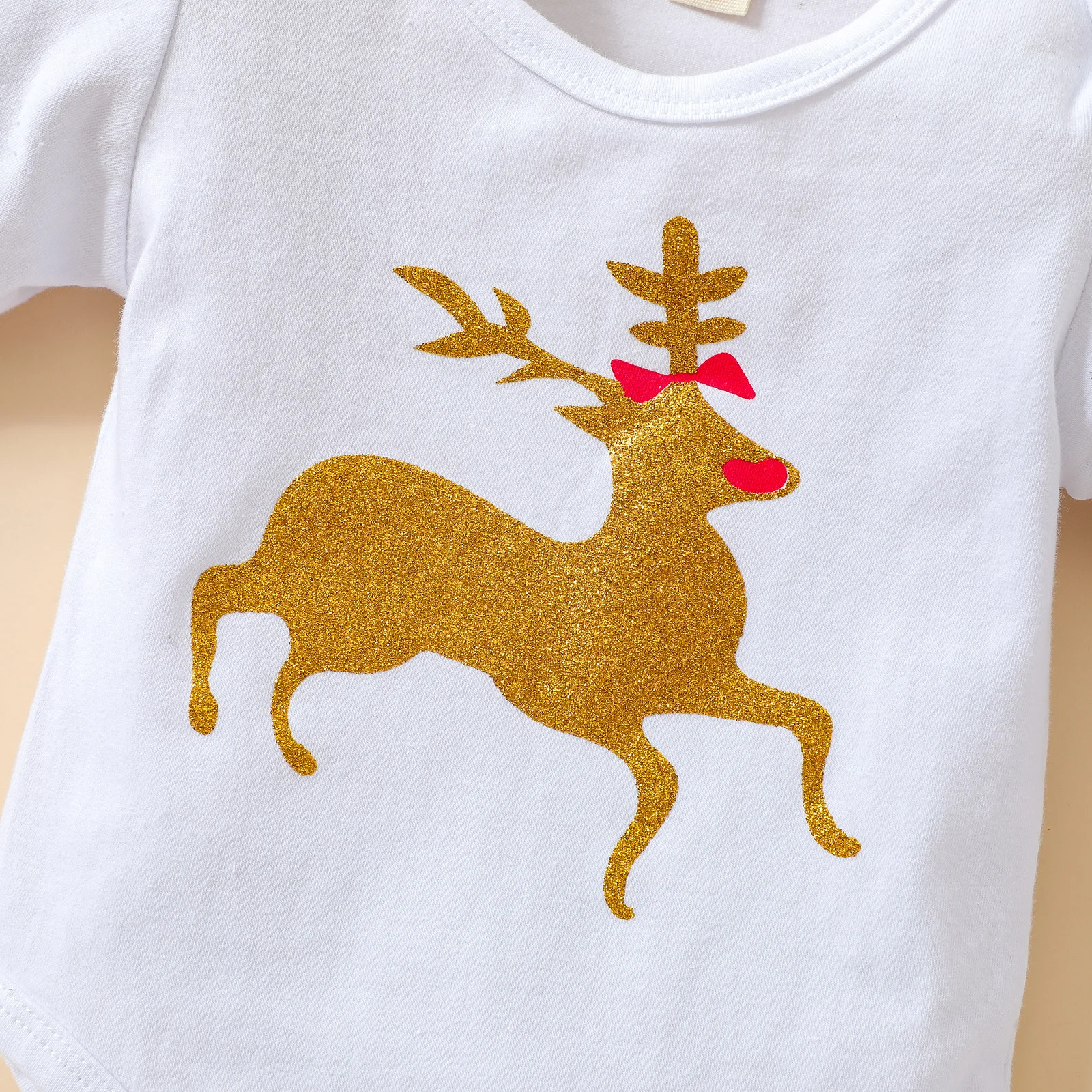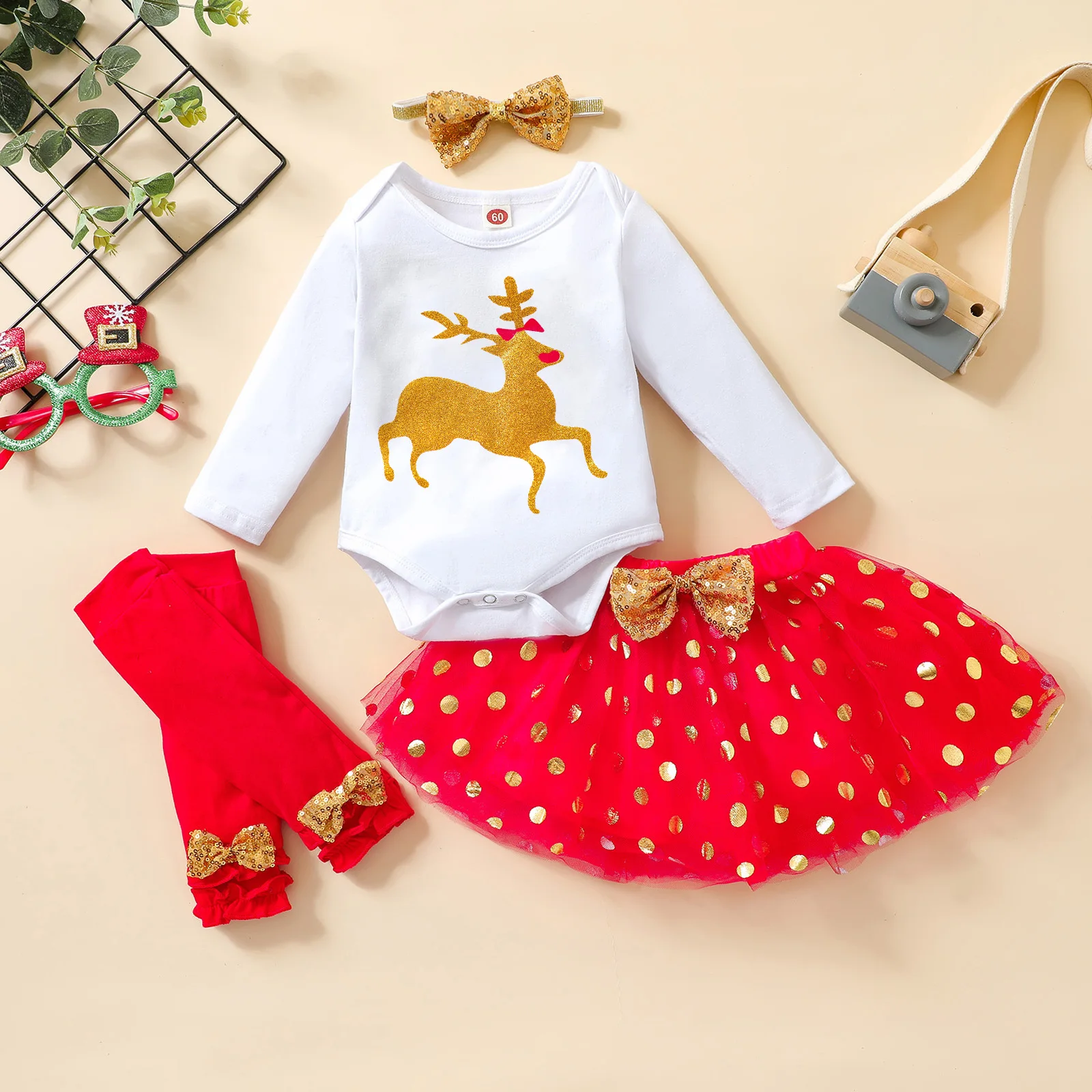 Детский Рождественский комплект одежды Ma Baby для девочек 0-18 месяцев, рождественские наряды для новорожденных, комбинезон с оленем, юбка-пачка + повязка на голову + гетры DD88