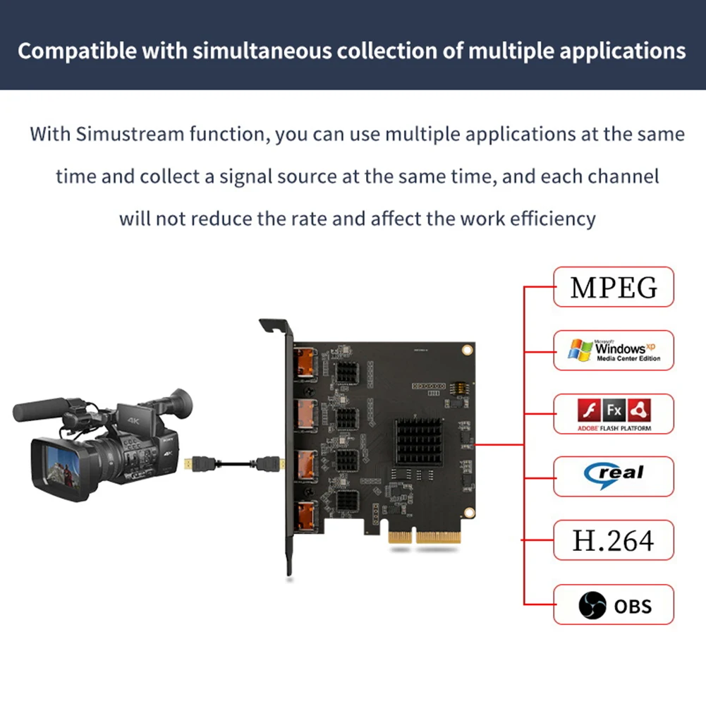 ACASIS 4-канальная HDMI-совместимая карта видеозахвата PCI-E 1080P 20-дневная Сетка сетевой адаптер для прямой трансляции