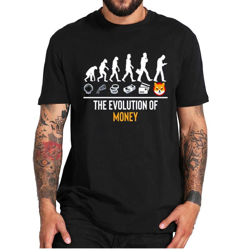 Футболка SHIB с принтом The Evolution of Money, криптовалюта Сиба-ину, футболка для фитнеса, Мужская футболка с круглым вырезом, европейские размеры, 100% хлопковые топы, футболка