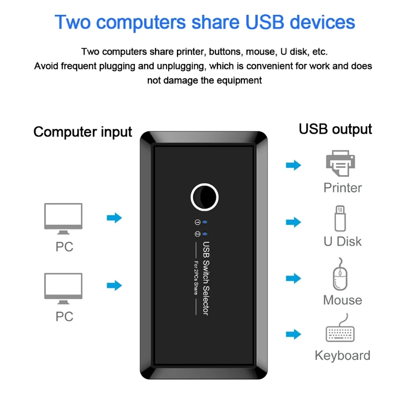 CPDD USB 2,0 концентратор 2 в 4 из KVM док-станция для принтера устройство для обмена монитором адаптер конвертер с 2 кабелямиOOTDTYОсобенности на 100% абсолютно новый и высокого качестваУстройство для совместного использования принтеров, обмен USB 2,0, обмен переключателем для 2 компьютеров, обмен 4 портами USB, для ПК с кнопочным переключателем и 2 usb-кабелямиОдна кнопка обмена между 2 компьютерами. Удобный и эффективный, 2 компьютера имеют 4 usb-устройства, подключаются и воспроизводят.Usb-устройства, такие как клавиатуры, мыши, usb-принтеры, сканеры, кривые плоттеры, многофункциональные принтеры, устройства, совместимые с Bluetooth, может использоваться с 2 компьютеры, экономя время и деньги.Для hdD, цифровой видеокамеры и другого оборудования может потребоваться внешний источник питания для работы. При использовании мощное оборудование, убедитесь в том, чтобы использовать стандартную 5-вольтовый адаптер для источника питания.Plug and play, подходит для Windows, Vista, Linux и других систем, вы можете использовать его без установки драйвера.Характеристики: Тип переключателя: кнопочный переключательРазмер: приблизительно 118x56x1 6 мм/4.64x2.2x0.63inЦвет: черныйВыход: 4 x USB2.0Вход: 2 x USB2.0Посылка включает в себя: USB 2,0-1 шт. переключатель2 кабеля USB1 x Руководство пользователяПримечание: Из-за проблем с световыми эффектами и углами съемки, в продукте будут определенные допуски, пожалуйста, поймите.Возможны отклонения в 0-1 см из-за измерения вручную.