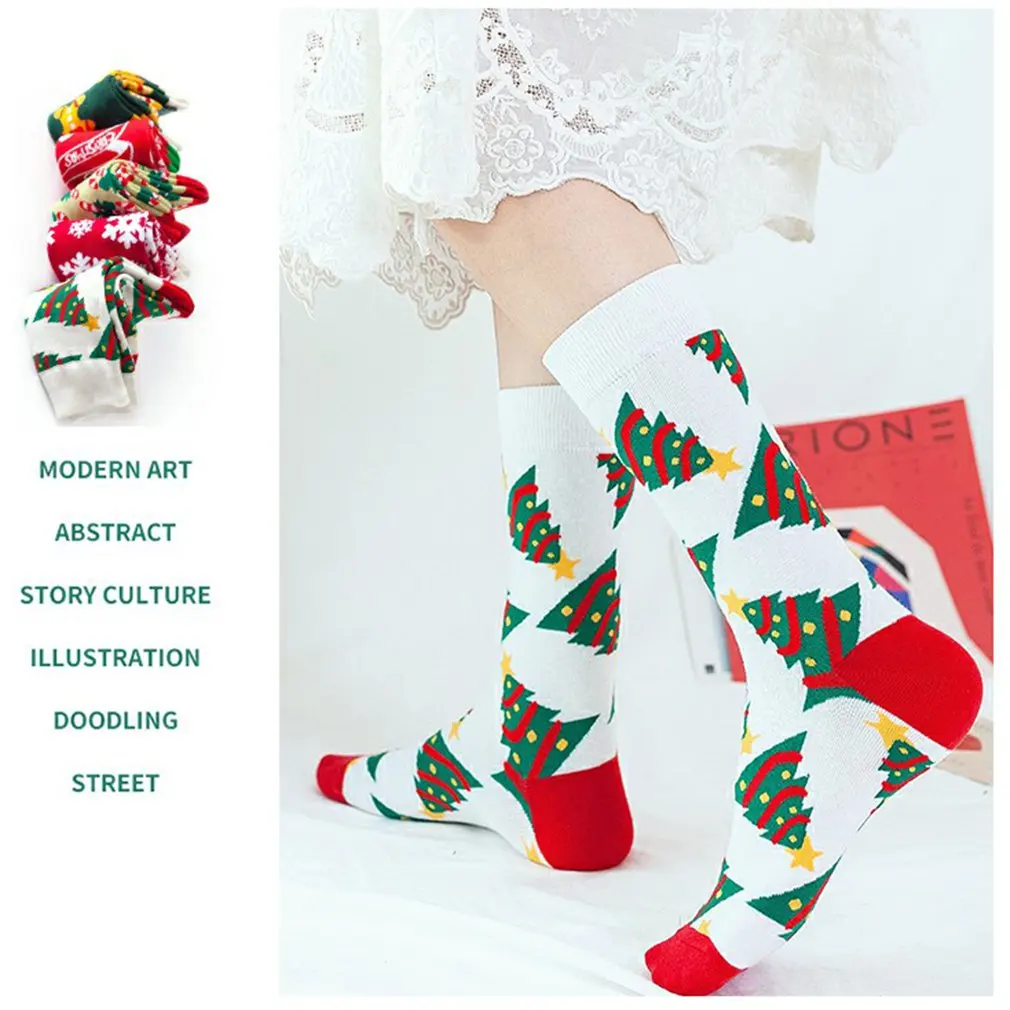 Женские повседневные рождественские носки, 1 пара, хлопковые теплые милые рождественские носки с изображением Давида и оленя для девушек, 1 пара