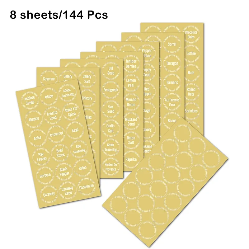 Этот набор этикеток для специй идеально подходит для стеклянных банок для специй, круглых колпачков, магнитных коробок для специй, выдвижных ящиков, ящиков для специй или других магазинов специй.