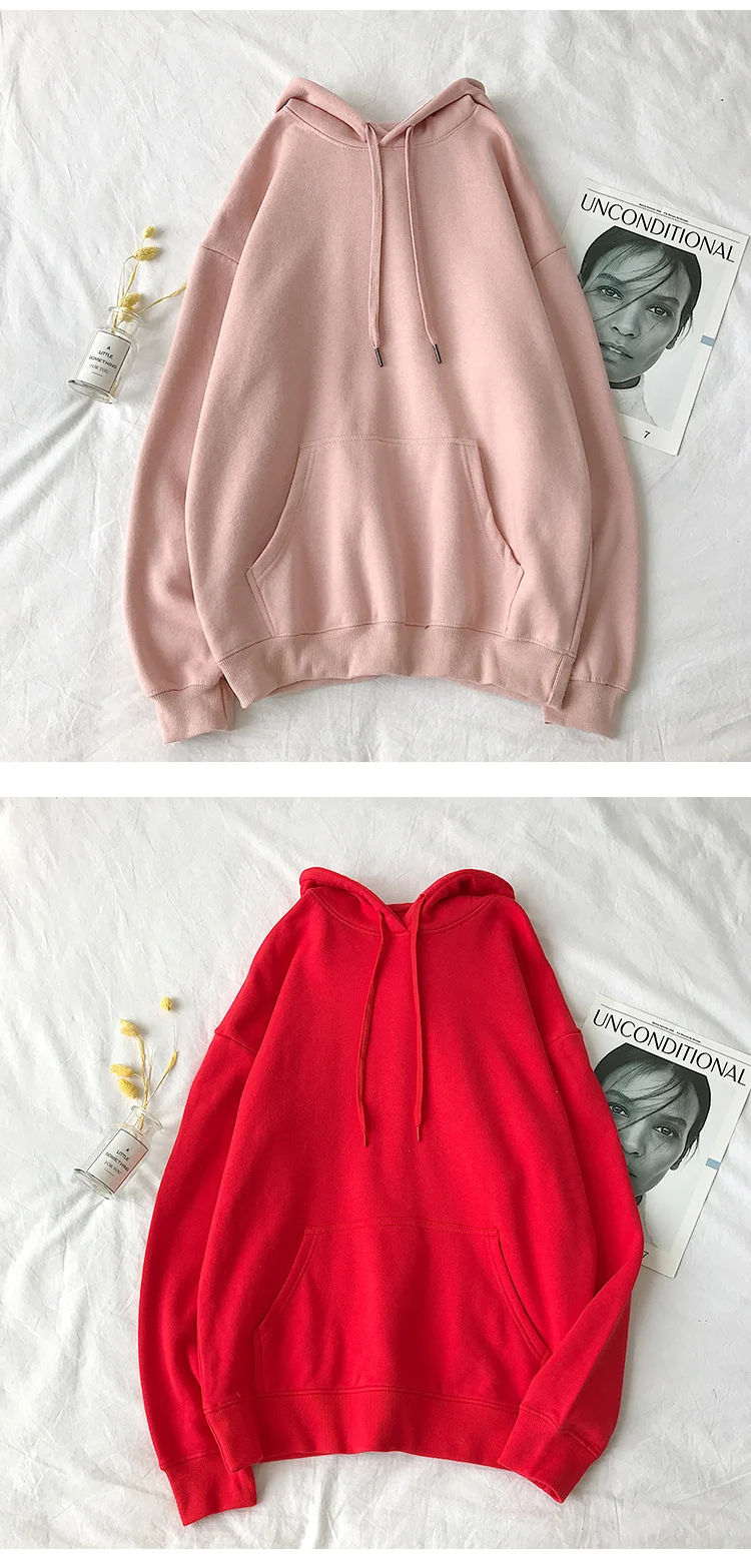 Женские свитшоты, однотонный корейский женский пуловер с капюшоном, 2022 хлопок, утепленные толстовки большого размера в стиле Харадзюку, модная одежда, куртка