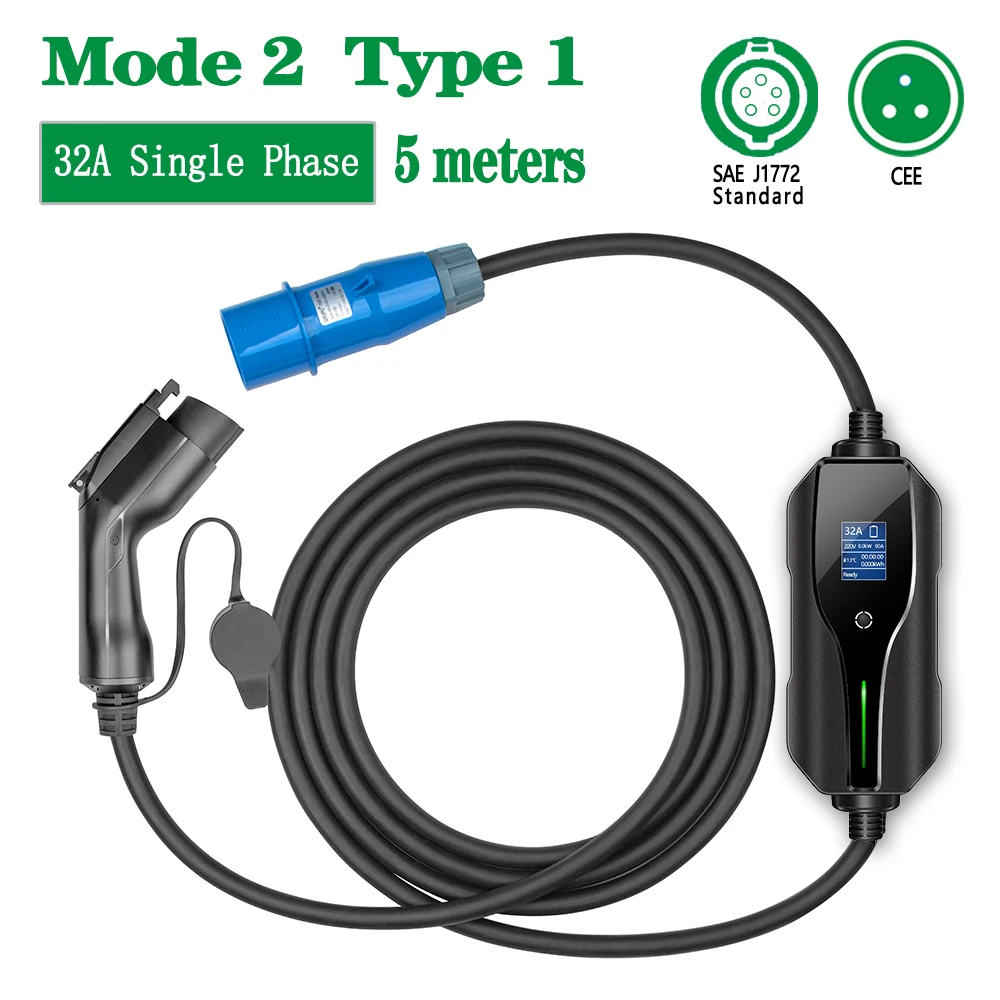 Зарядное устройство J 1772 EV, тип 1, 32 А для портативного электромобиля, 5 метров, вилка CEE, 220-240 В, автомобильный зарядный кабель