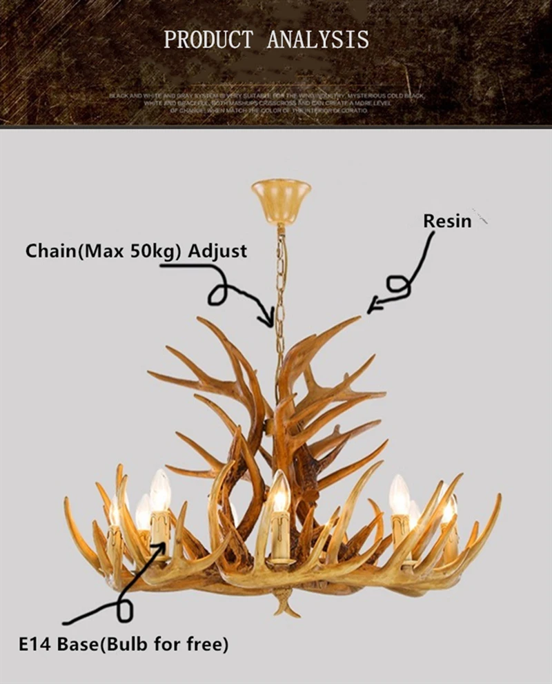 Информация о продукте:[Размер приспособления]:4 головки: диаметр 62 см; Высота 40 см6 головок: диаметр 62 см; Высота 40 см9 головок: диаметр 90 см; Высота 42 см[Длина Цепочки]: 50 см (можно регулировать)[Материал]: смола + металл[Цвет крепления]: коричневый, белый,[Процесс]: покрытие, сварка, ручная вязка[Держатель]: E14 (лампочки не входят в комплект)[Напряжение]: 110 В или 220 В[Мощность]: 5 Вт-40 Вт[Применение]: салон, бар, ресторан, спальня, домашнее освещение, другоеХарактеристика: канделябро, деревенские люстры, винтажное промышленное освещение