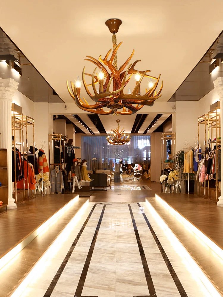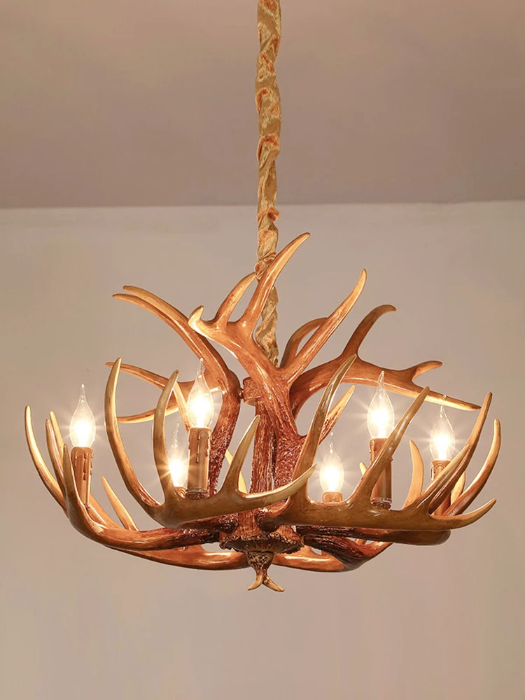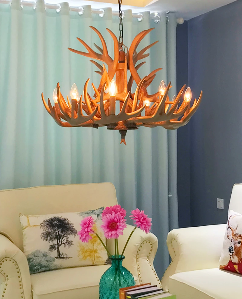 Американский кантри коричневый белый смолы рога люстра освещение Лофт ретро рога оленя лампы E14 лампы для гостиной Ресторан Бар