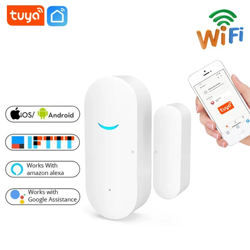 Смарт-детекторы открытойзакрытой двери Tuya, оповещения, сигнализация безопасности, Wi-Fi, уведомления через приложение, работает с Alexa Google Home
