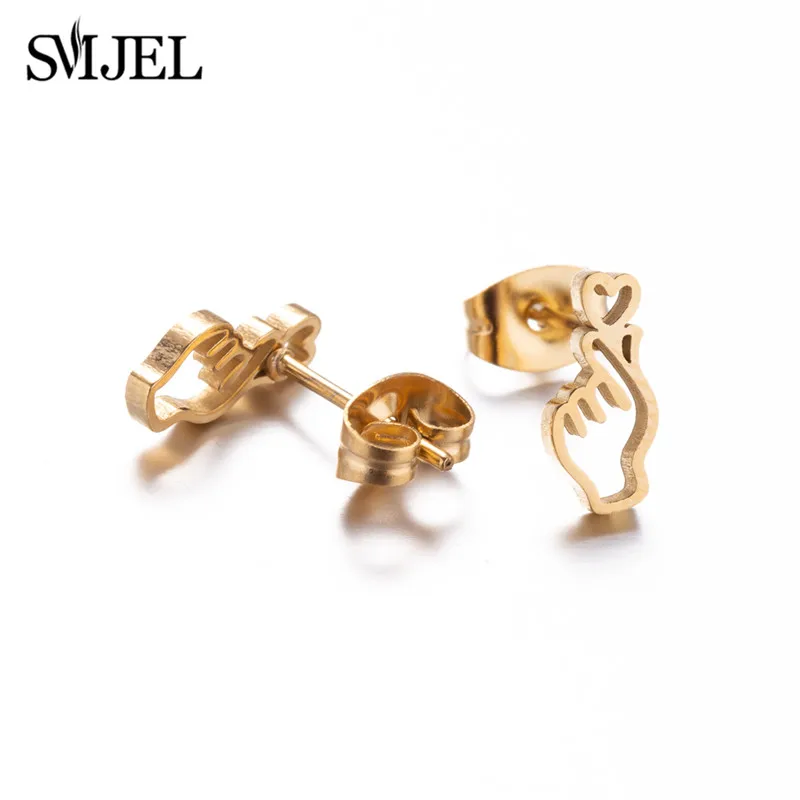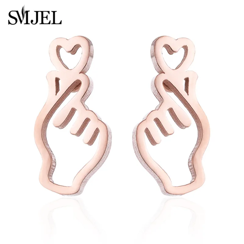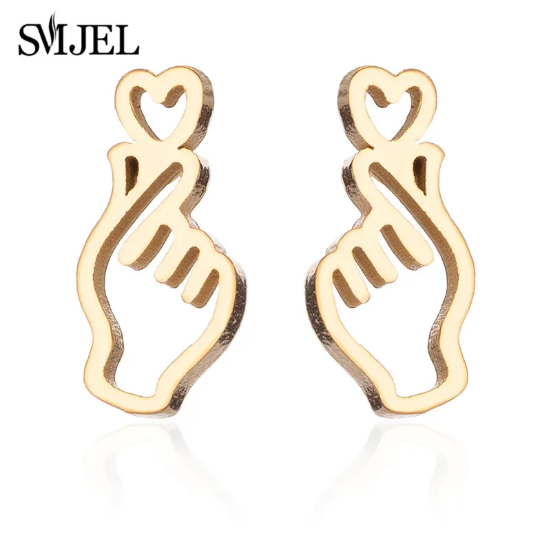 Серьги унисекс из нержавеющей стали, корейский стиль серьги руки, Женские Ювелирные изделия, показывают вашу любовь, сердечко серьги-гвоздики для девочек букле d'ore