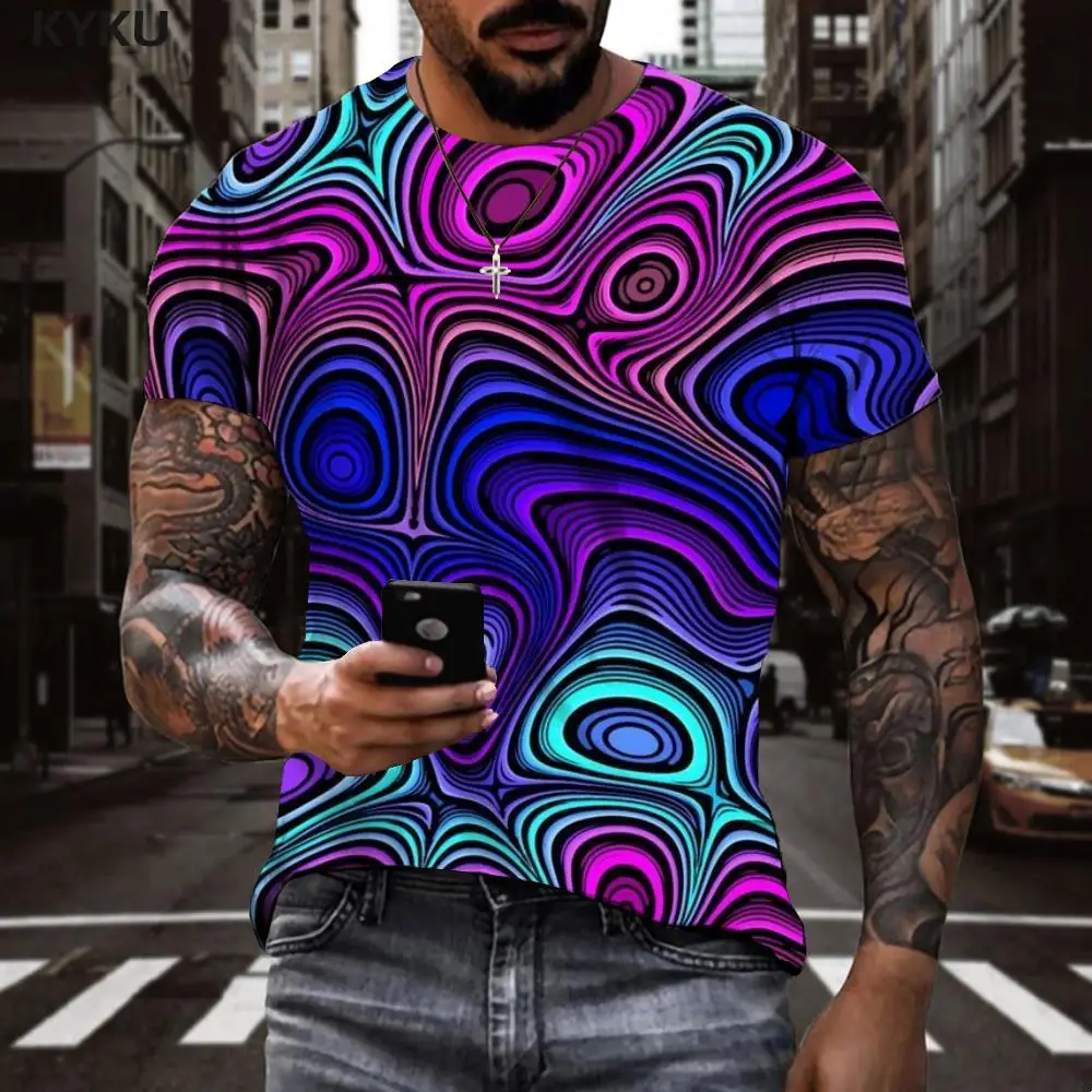 Мужская футболка, с 3D-принтом головокружения, красочные смешные футболки, градиентная аниме-одежда, радужная футболка, мужская одежда с принтом в стиле панк-рок