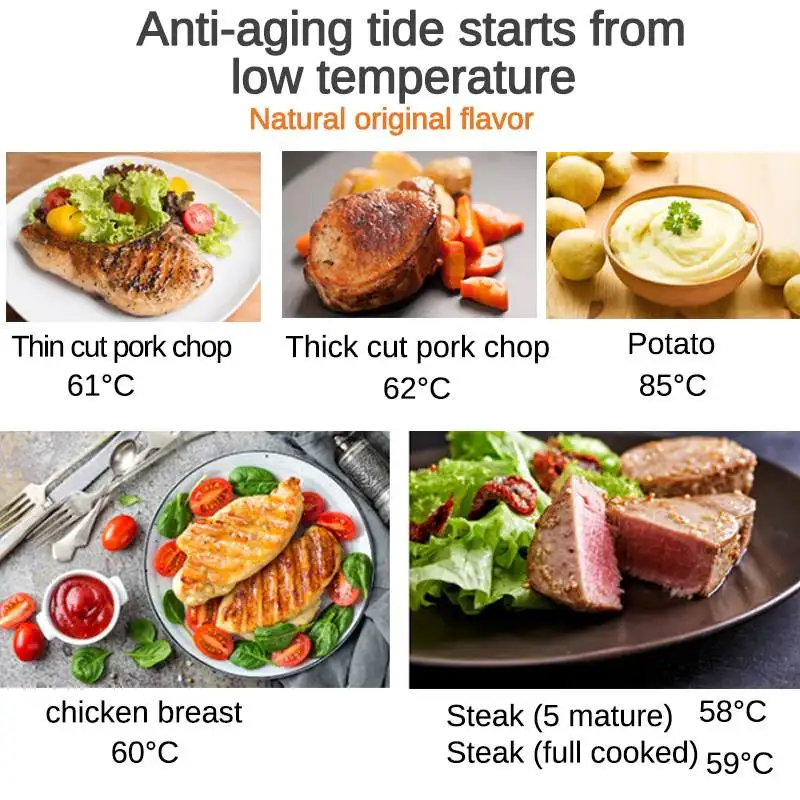 Инструменты для нового образа жизни-Sous Vide Cooker привносит профессиональную технологию приготовления пищи в ресторан домой, которая готовила любое мясо-говядину, свинину, баранина или птицу, особенно хорошо с рыбой и морепродуктами, любые овощи, яйца, много фруктов и десертов. Остается питательным веществом, сохраняет витамины на 90% после приготовления пищи.