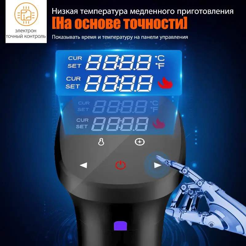 Точное время и контроль температуры-Большой ЖК-дисплей, гиперточный контроль температуры (+/-0,1 ℃), цифровой контроль температуры (0-99,9 ℃)(0 °F-212 °F) И контроль времени до минут. Приготовление пищи в домашних условиях с sous vide обеспечивает и повышает безопасность пищевых продуктов