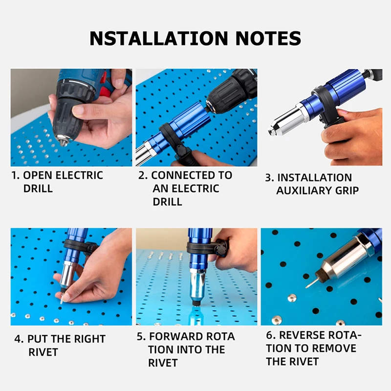 Прямая поставка:1. Посылка не включает счета-фактуры или рекламные счета.2. Мы можем отправить партиями, и различные каналы логистики могут быть выбраны.3. Мы не имеем минимального количества заказа.4. Быстрая доставка, обычно в течение 24-48 часов.5. Предоставьте VIP ссылку, чтобы получить VIP цену.Описание товараМесто использования: Деревообработка, нержавеющая сталь, трубаИсточник питания: используется с электрической дрельюМаксимальная скорость: 1000 об/минМинимальная сила крутящего момента: 15 Н. ММатериал: углеродистая сталь и пластикЦвет: синий, черный, серебристыйПолная длина: около 172 ммИнструкции по использованию1. Отрегулируйте электрическую дрель на соответствующую шестерню2. Откройте патрон электрической дрели, вставьте адаптер и поверните зажим вперед3. Включите функцию разворота электрической дрели и положите в заклепки соответствующие спецификации, пока не услышите щелчок4. Включите функцию прямого вращения снова, чтобы выровнять отверстия и управлять заклепками5. Включите обратную функцию снова и выходите из заклепкиПримечаниеПри использовании адаптера с заклепками необходимо держать переднюю ручку для правильной работы.Упаковка продукта:1 * клепальный адаптер1 * вспомогательная ручка4 головки с заклепками1 * мини ключ