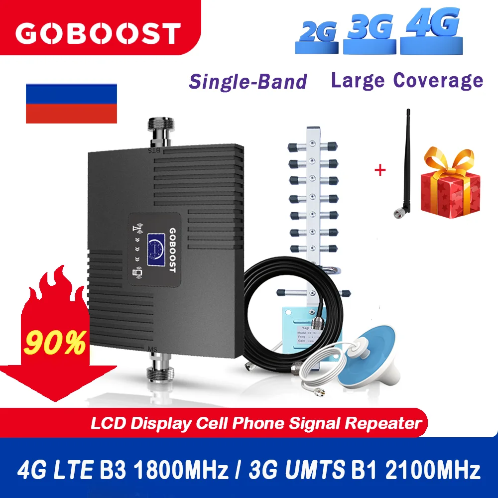 Ретранслятор GOBOOST мобильный сетевой усилитель 3G 4G Сотовый усилитель B1 2100MHz LTE 1800 B3 4g Полный комплект 4G антенный кабель ретранслятор
