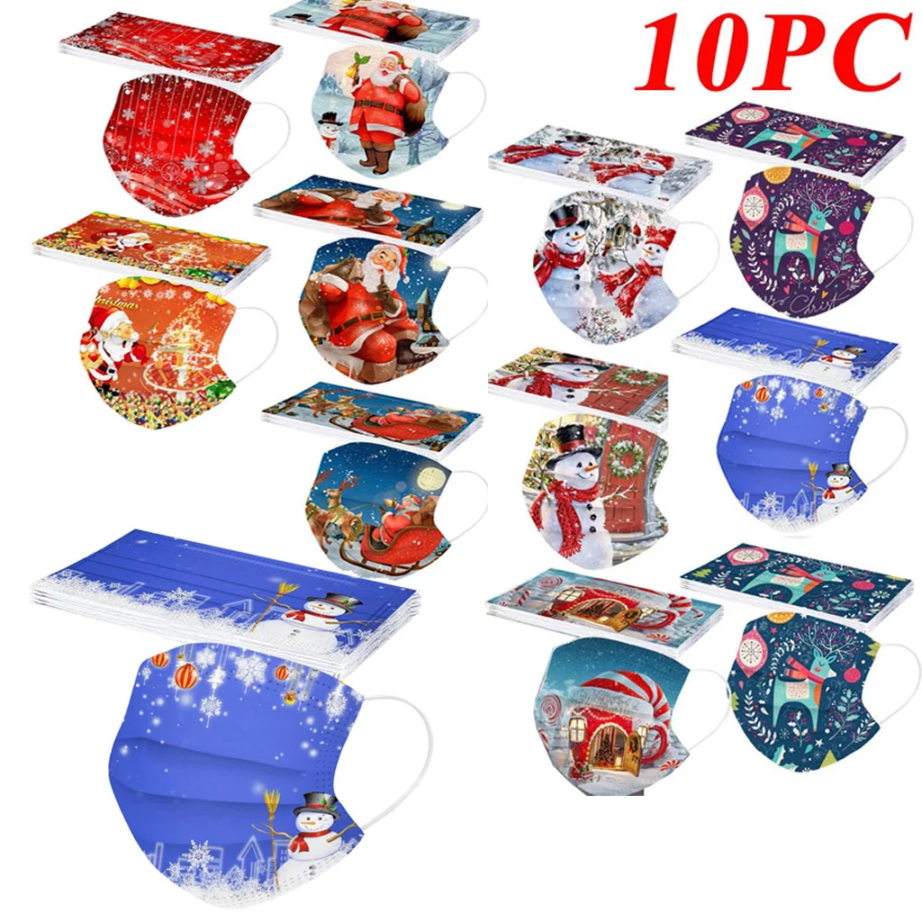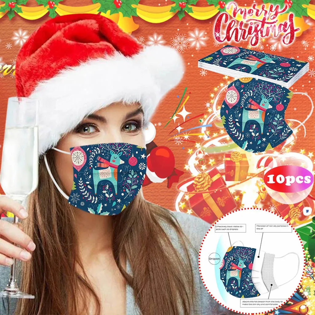 10 шт., одноразовые маски для взрослых с рождественским принтом