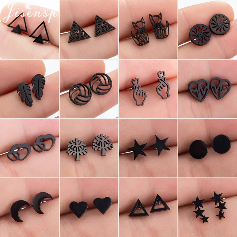 Серьги-гвоздики из нержавеющей стали для мужчин и женщин, мини-сережки в стиле хип-хоп с черными листьями, звездами, луной, круглыми гвоздиками, Модные Ювелирные изделия Для Пирсинга Ушей