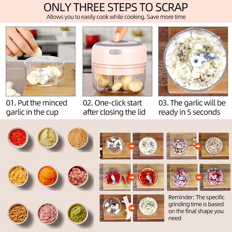 Mясорубка электрическа электромясорубка гриндер блендер кухонный комбайн мясорубка электрическая кофемолка элекрическая 200250 мл Электрический измельчитель чеснока, кухонный измельчитель имбиря, USB-зарядка