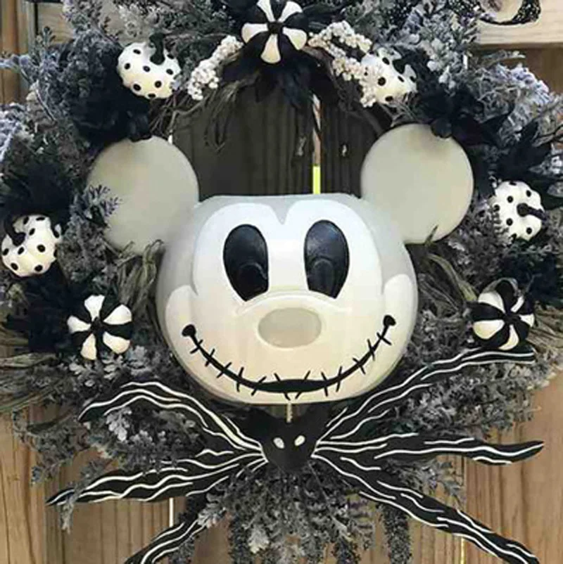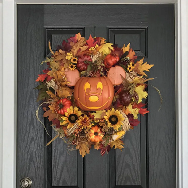Осенний венок для Хэллоуина, 35 см, мультяшный мышонок, тыква, черный венок, подвесная дверь, садовый венок, домашнее украшение на Хэллоуин