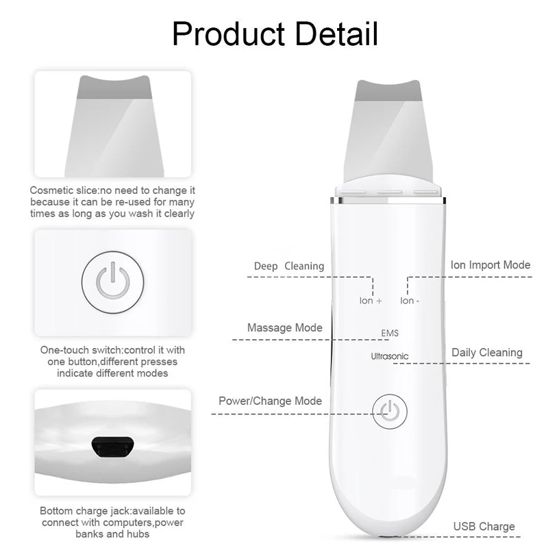 Ультразвуковой скребок для кожи, средство для очистки лица, ионное средство для очистки угрей и черных точек