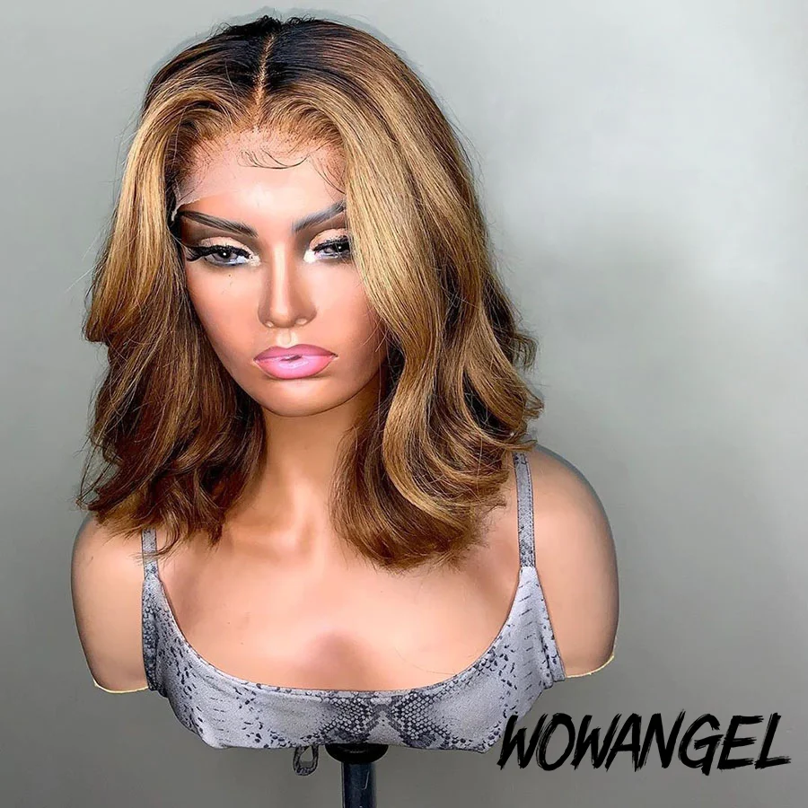 WOWANGEL 13x 6 человеческие волосы на фронте шнурка 1b/27 Remy Ombre 150 бразильские медовые светлые парики Волнистые для тела для женщин отбеливатель узлы Детские волосы