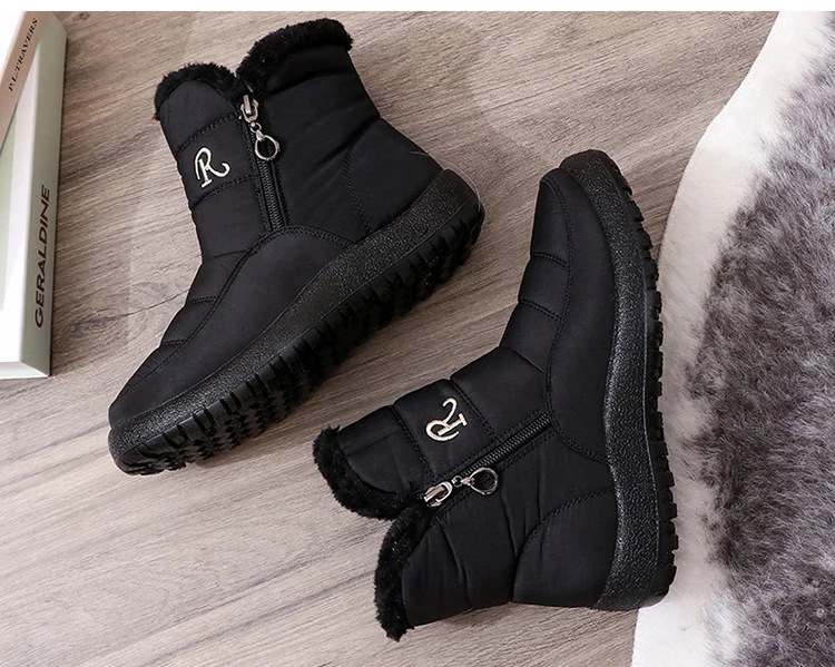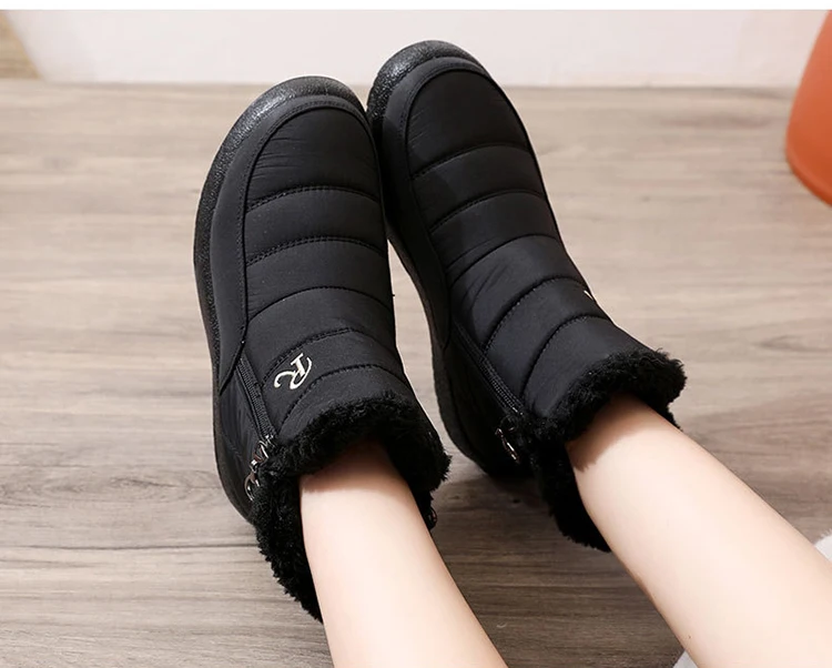 Ботинки женские зимние, теплые, черные, водонепроницаемые, 2021