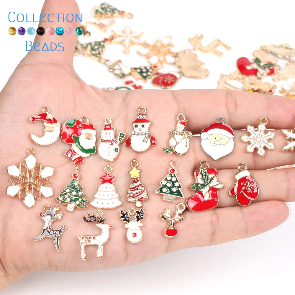 10 шт.лот эмалевые Рождественские Подвески, елка Санта Клаус, Рождество, сделай сам для изготовления ювелирных изделий, подвески, ожерелья, браслеты ручной работы