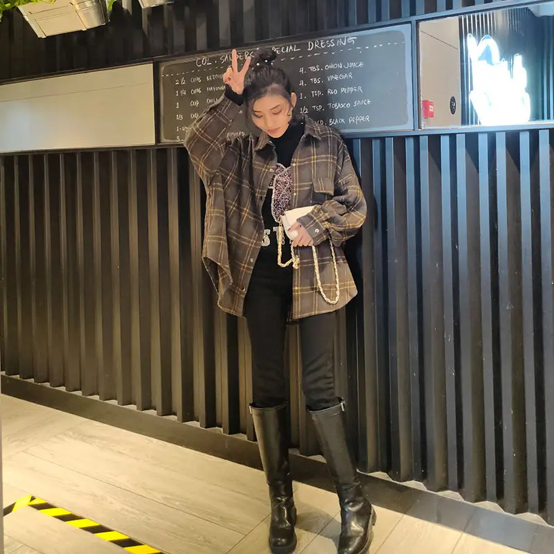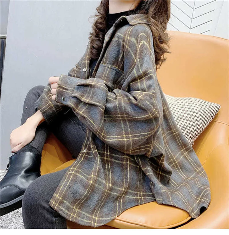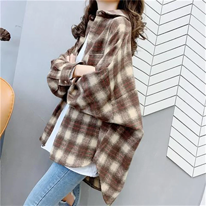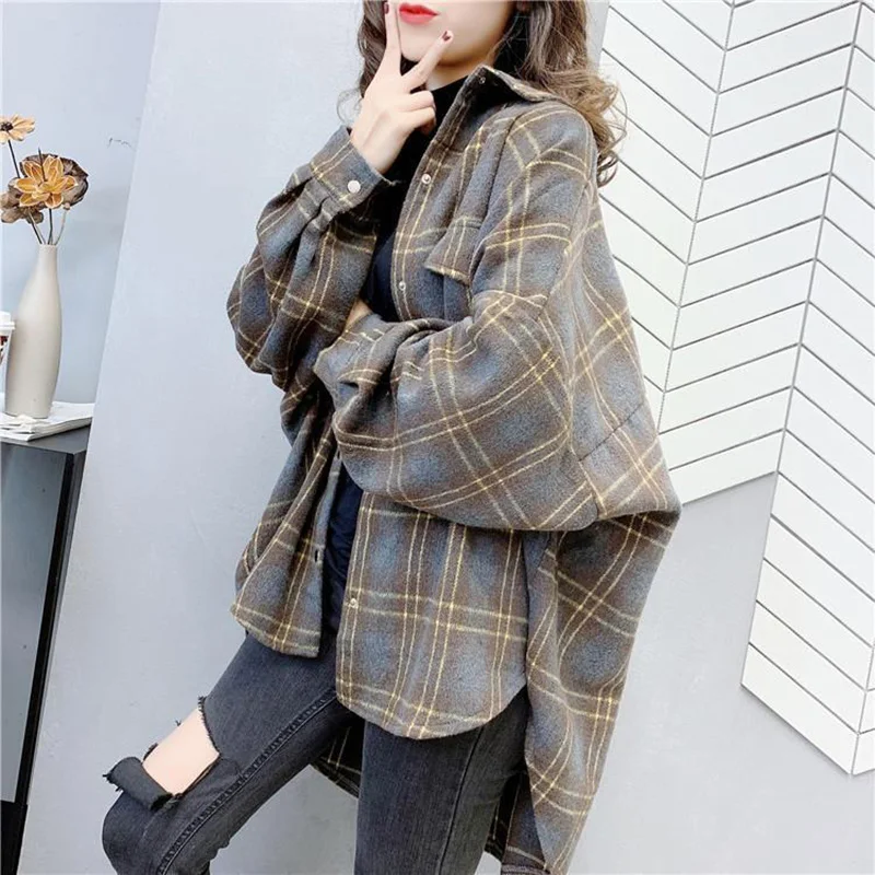 Женская клетчатая рубашка в стиле Харадзюку, рубашка большого размера с рукавом летучая мышь, отложным воротником, на пуговицах, в стиле ретро, топы с длинным рукавом, 2020