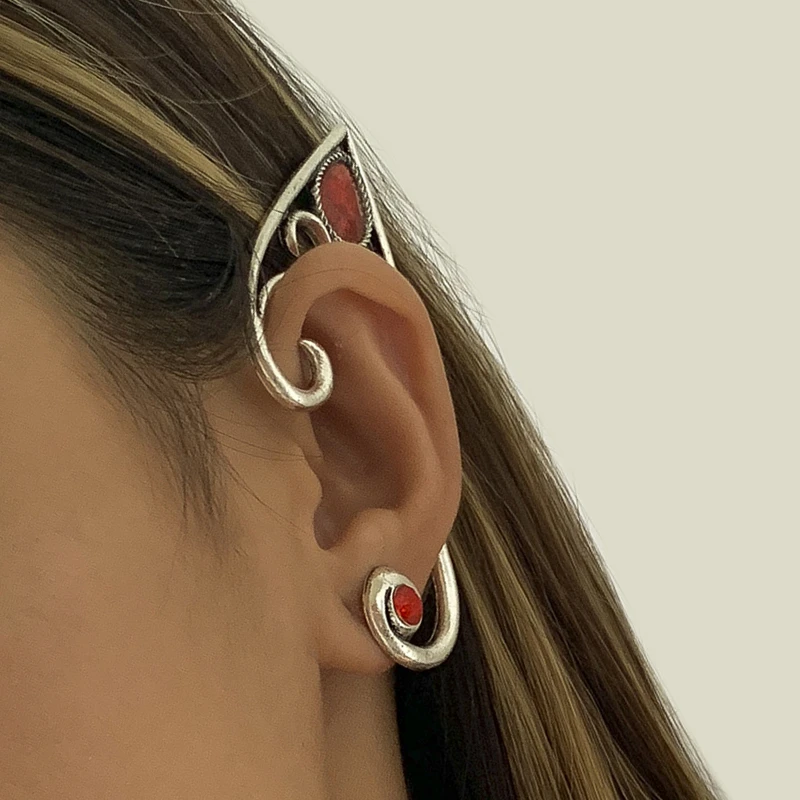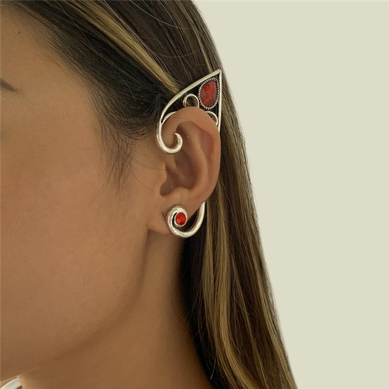 Женские серьги-клипсы с красным драгоценным камнем, в этническом стиле