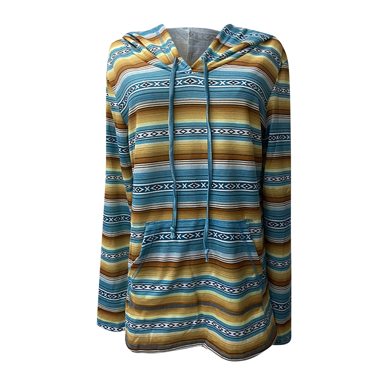 Женские повседневные толстовки, свитшоты, пуловер в полоску, с капюшоном, блузка с длинным рукавом, топы, толстовка, женская одежда