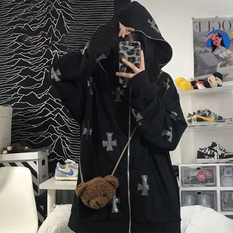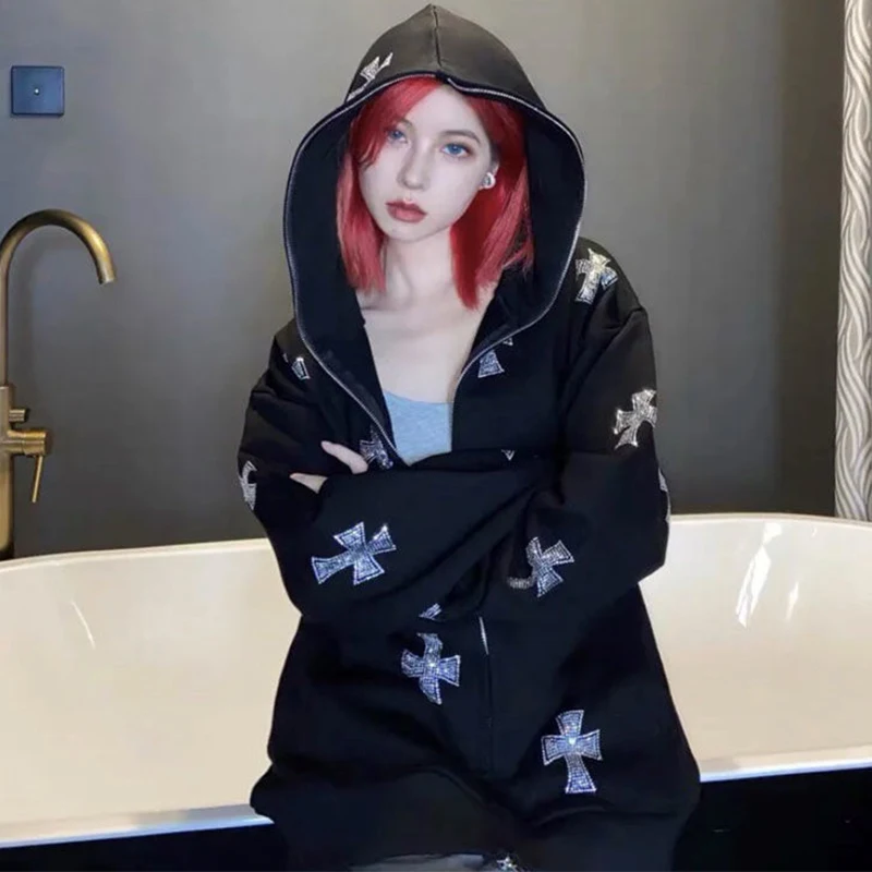 Куртка Y2k Женская в стиле хип-хоп, свитшот на молнии в Корейском стиле панк, Готическая куртка с длинным рукавом и капюшоном на молнии для мужчин